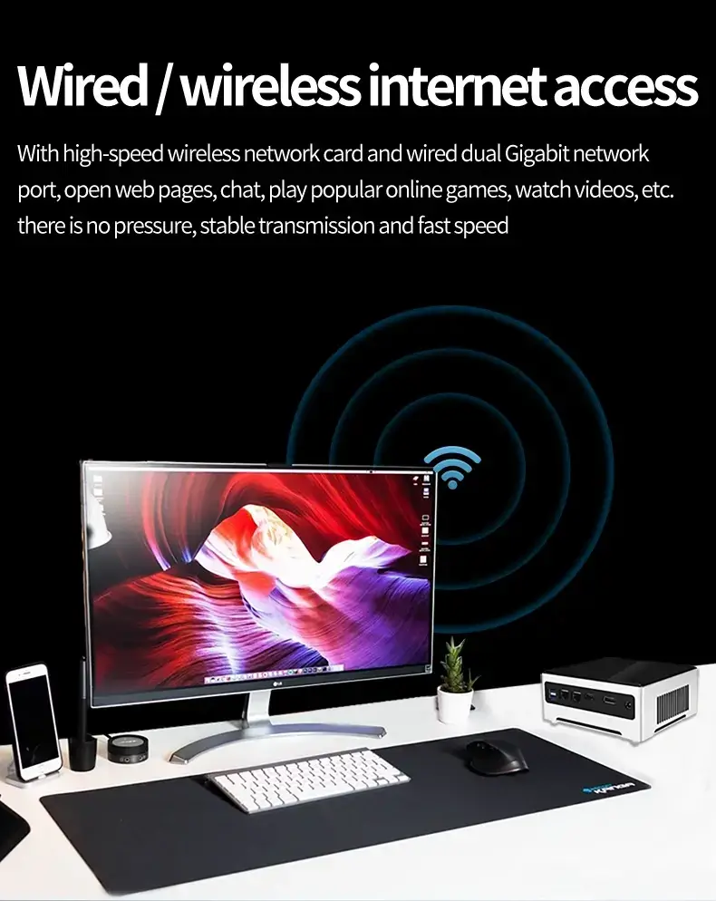 Designed specifically for modern workspaces, this mini PC condenses the powerful performance of a desktop computer into a palm-sized form factor. Whether you are a business professional seeking a minimalist desktop setup or a creative team requiring the flexibility to work on the go, it is the ideal choice for you.