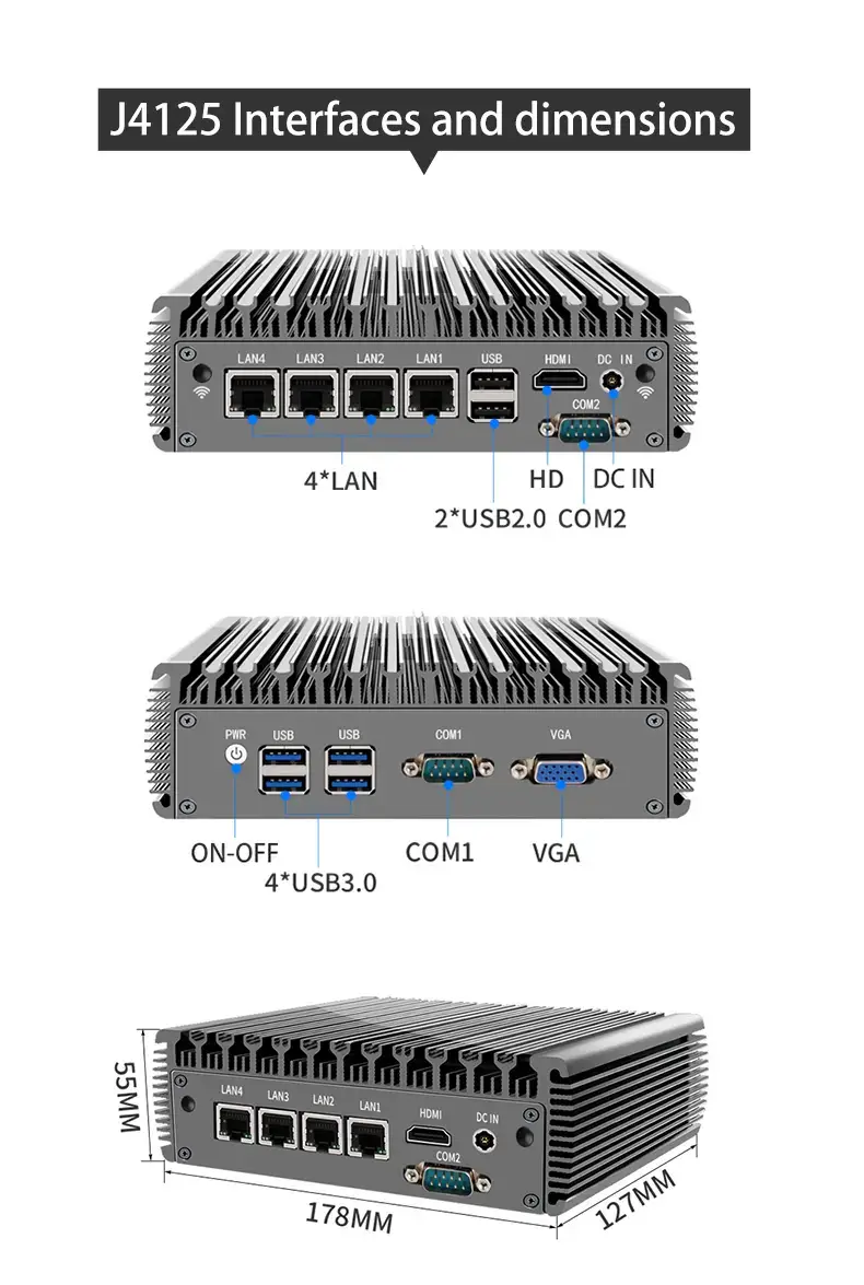 Built on the Intel J4125 platform, this networking appliance is engineered for ultra-fast connectivity and industrial-grade reliability. Featuring 4x 2.5G LAN ports, it’s the ultimate choice for home labs, SME firewalls, and industrial gateways.