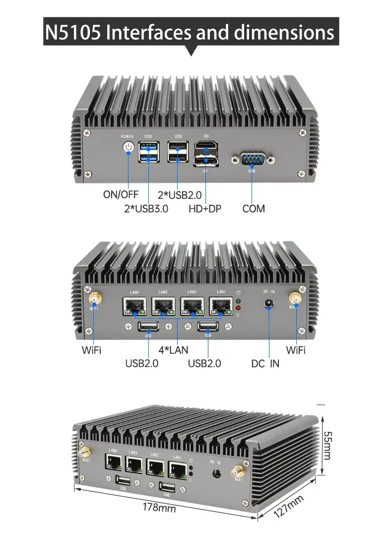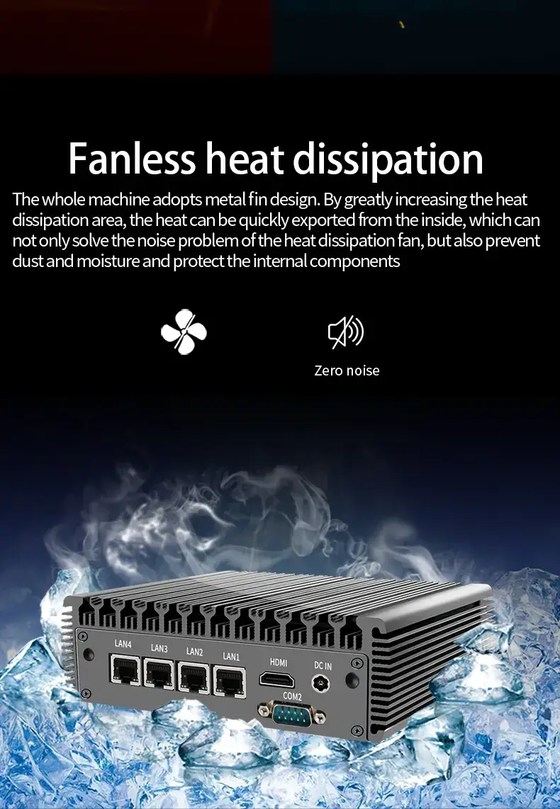 • Passive Fanless Cooling: The heavy-duty aluminum heat-sink chassis ensures 0dB silent operation and 7x24h stable performance even in demanding environments.