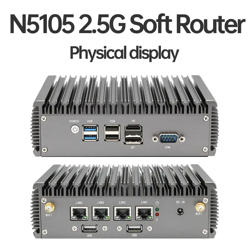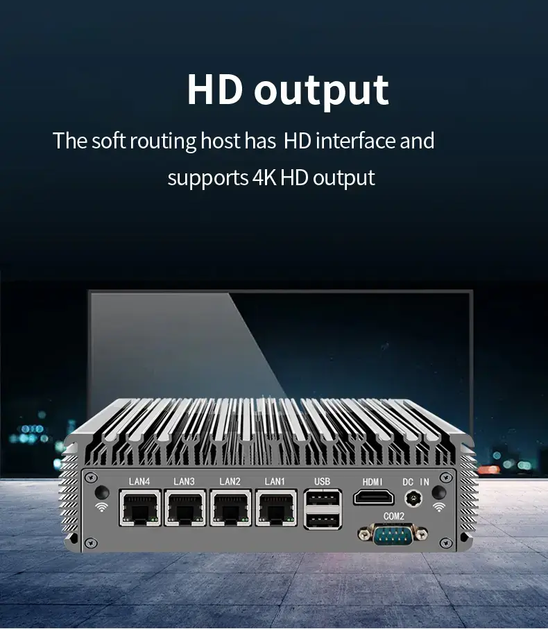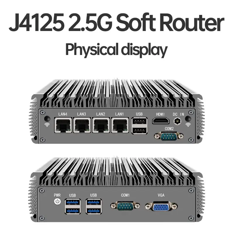 J4125 4-Port 2.5G Soft Router Mini PC – Fanless Cooling | 6*USB | HDMI+VGA Dual Display | High-Performance Industrial Firewall