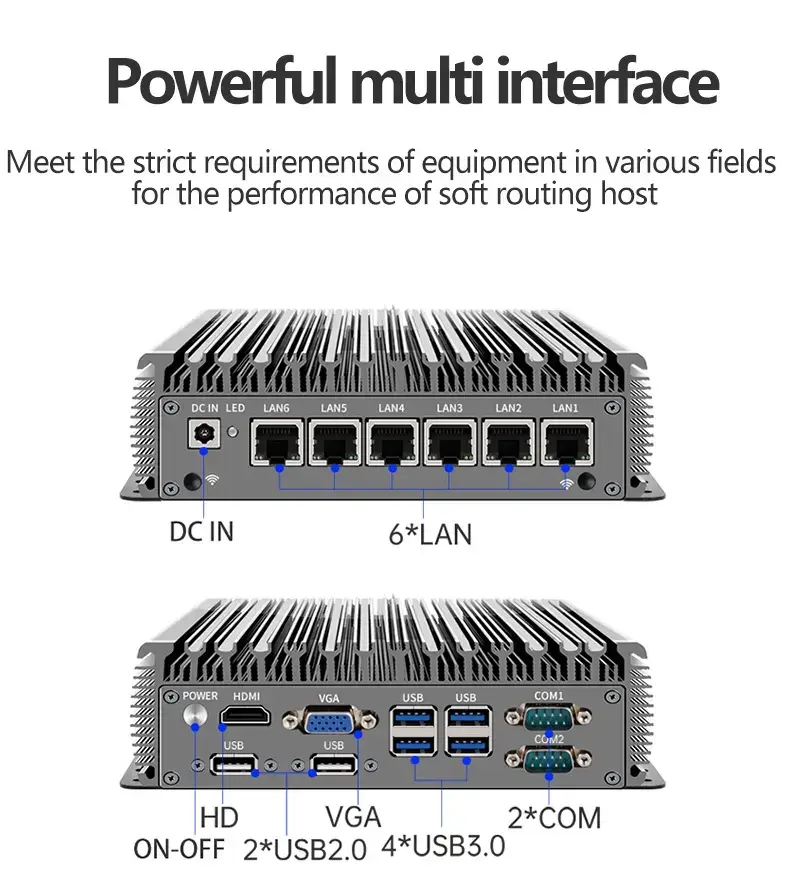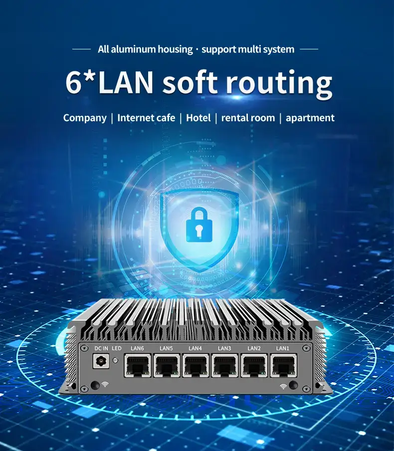 - 6-LAN Performance Array: Equipped with 6x Intel Gigabit/2.5G LAN ports, it supports multi-WAN, link aggregation, and network isolation—perfect for pfSense, iKuai, and OpenWrt firewall systems.