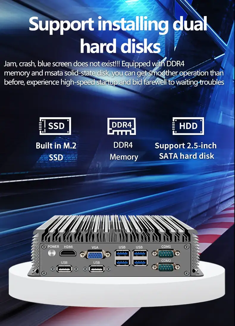 - Full I/O Expansion: Featuring 6 USB ports (4x USB 3.0), dual COM ports, and HD+VGA dual display, it perfectly bridges the gap between a networking powerhouse and a versatile industrial controller.