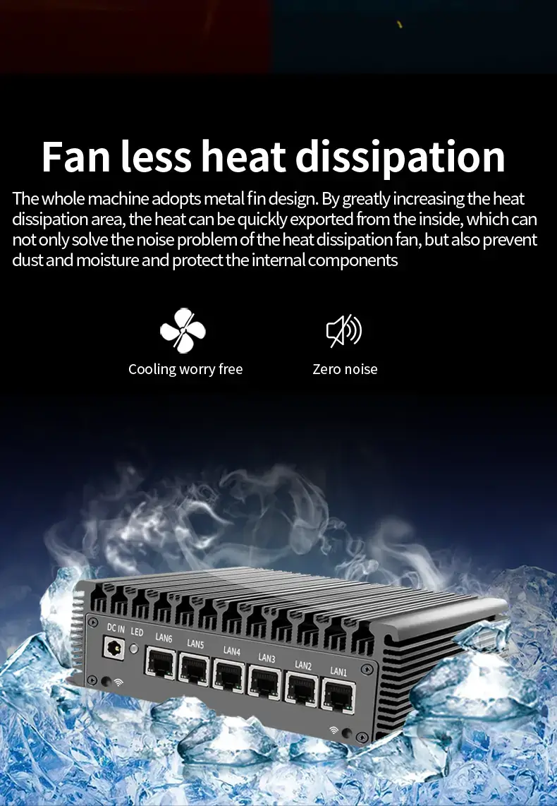- 6-LAN Performance Array: Equipped with 6x Intel Gigabit (or 2.5G) LAN ports, it supports multi-WAN, link aggregation, network isolation, and various firewall systems (pfSense, OpenWrt, etc.).