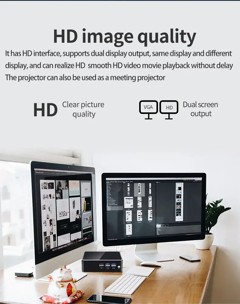 The YC027 is a compact Mini PC designed specifically for basic office workeducation, and multi-device integration. It offers exceptional expansion capabilities at a highly competitive price, making it an ideal choice for practical-minded users.