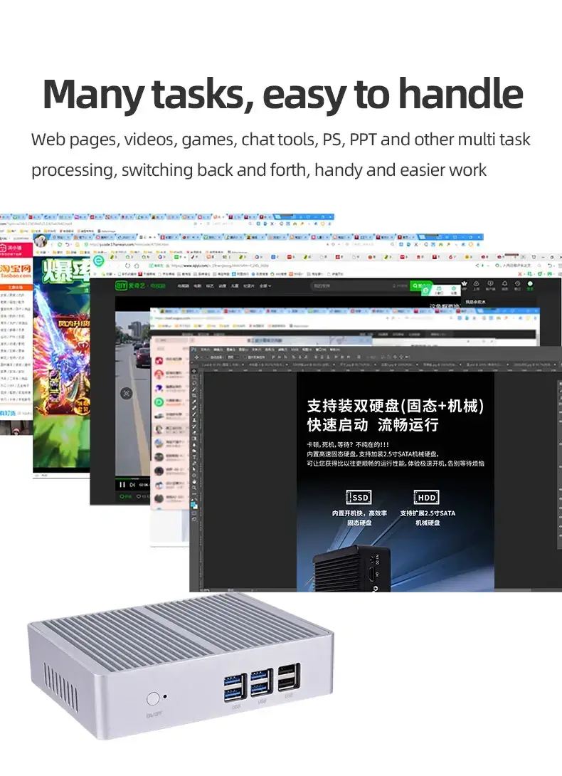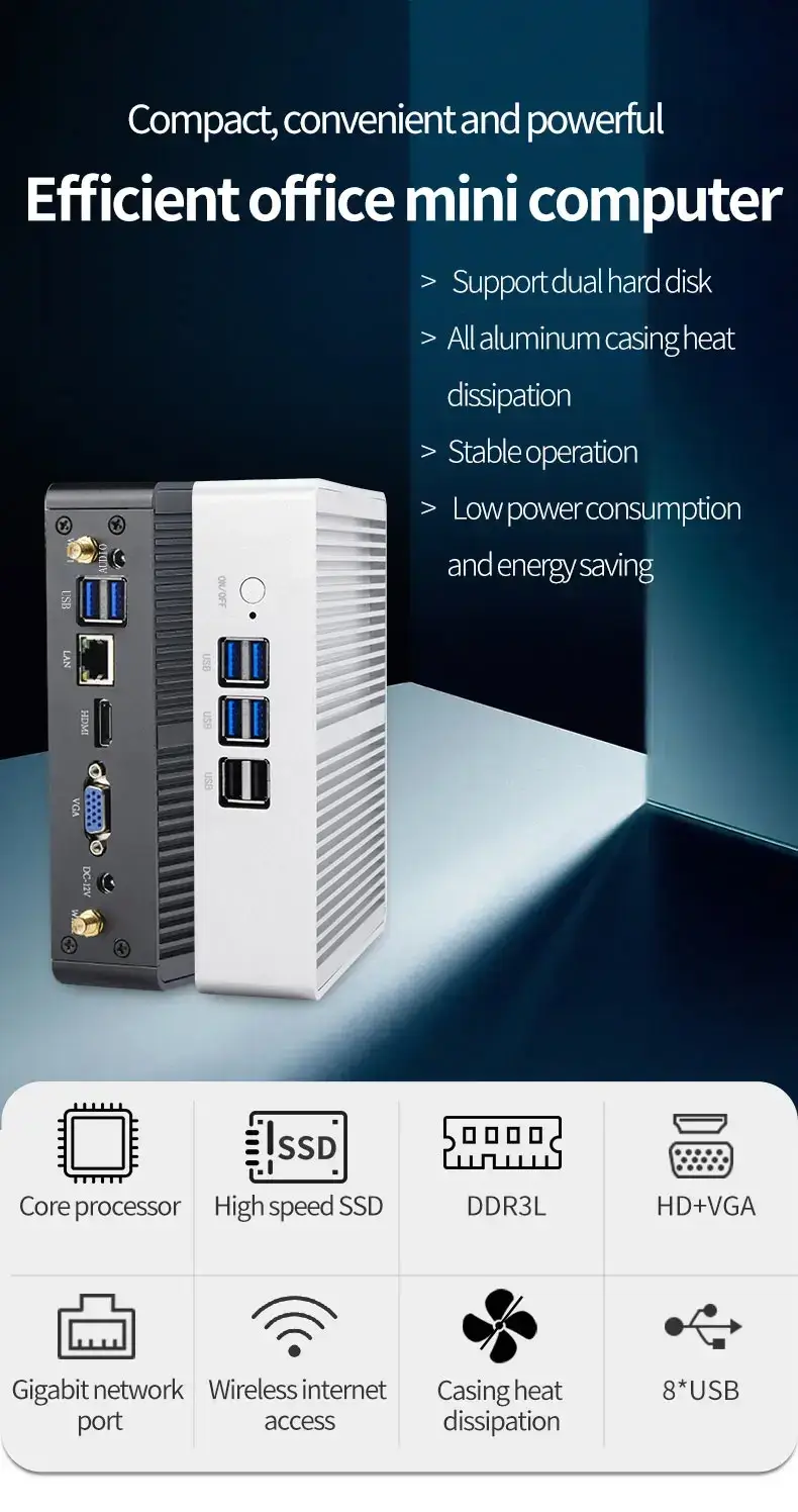 YC039 Core Series Mini PC: Dual Display Output (VGA + HD) | 6x USB Ports | Business/Office & Industrial Control Portable Microcomputer
