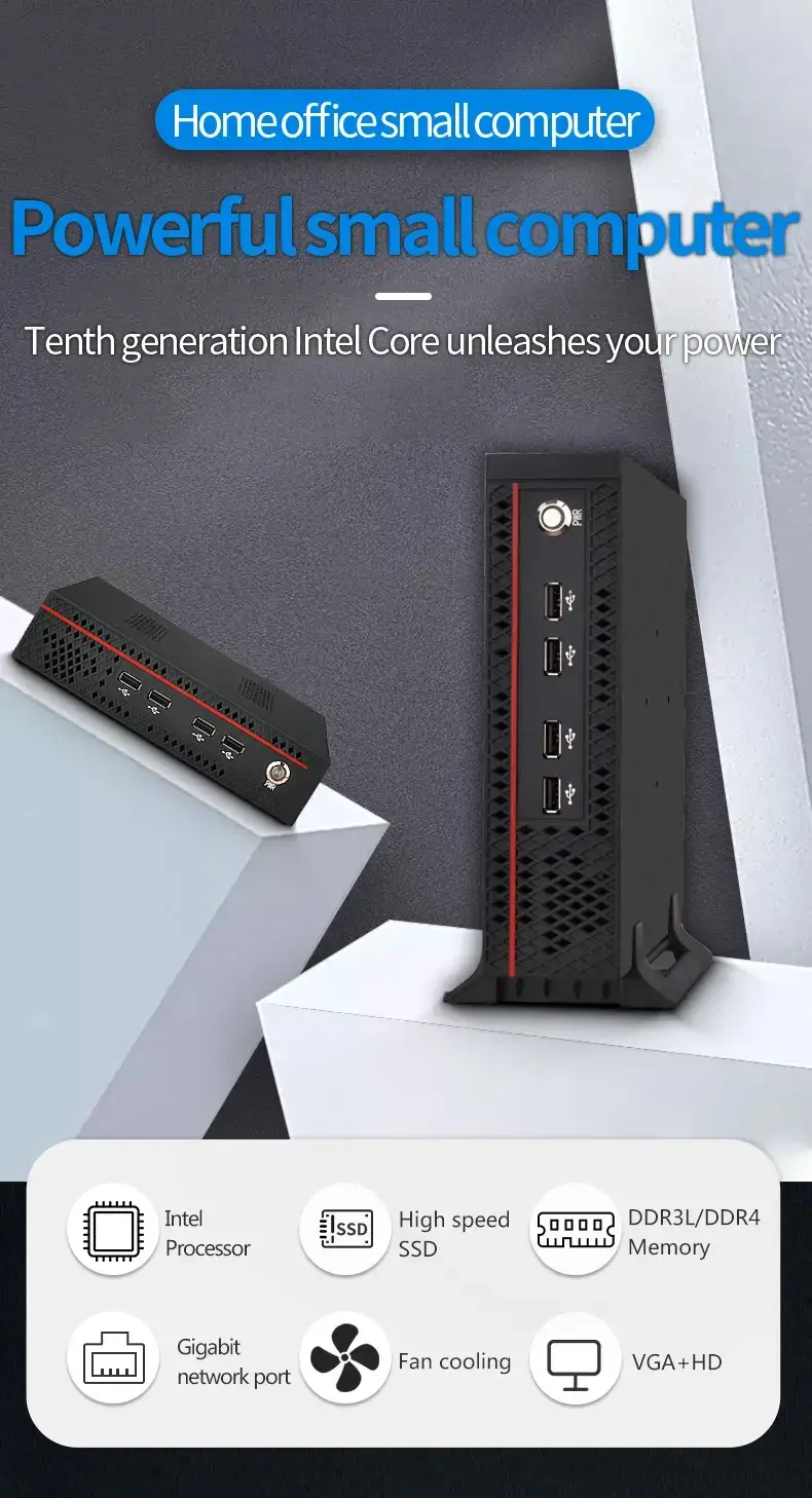 YCD006 Business Mini PC (Core i3/i5/i7 3rd/4th/6th Gen) – Dual Display (HD+VGA) | 8 USB Ports | Cost-Effective Vertical Micro Desktop