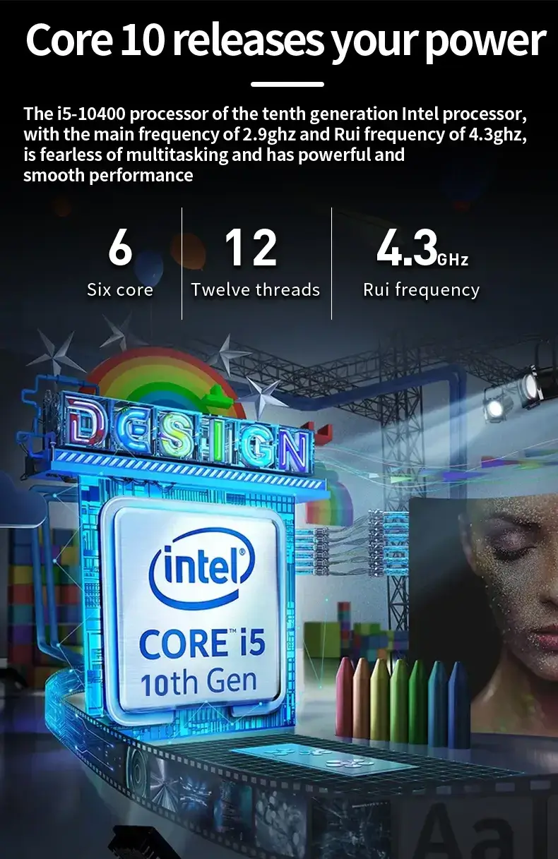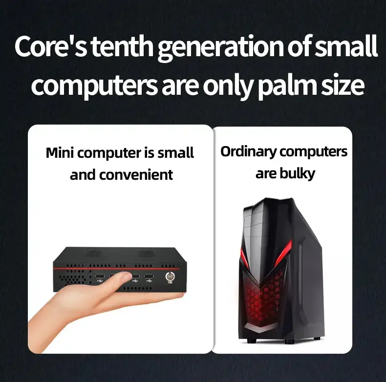 YCD006 High-Performance Mini PC (10th Gen Core & Above) – Dual Display (HD+VGA) | 8 USB Ports | Vertical Business Desktop Computer